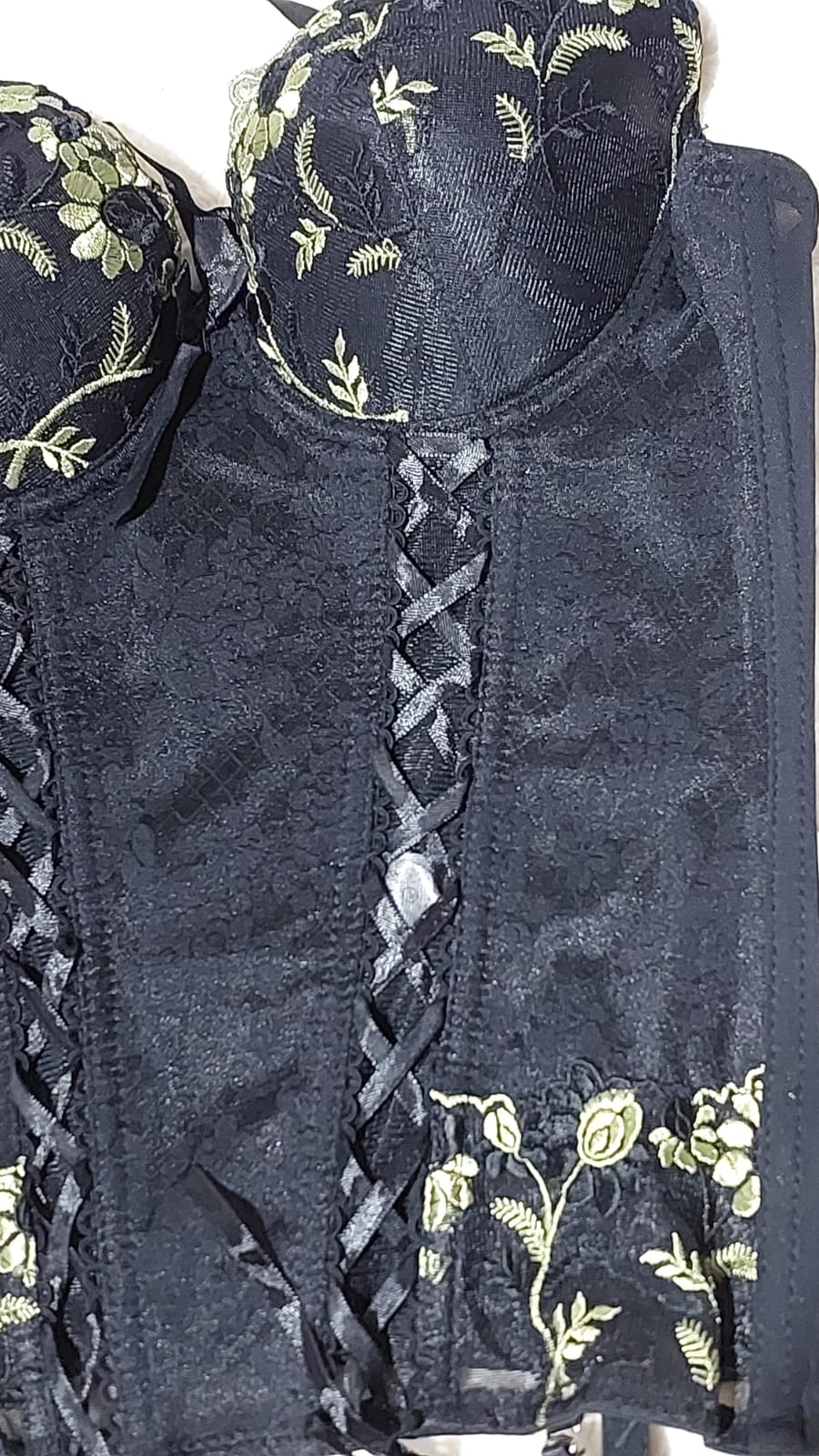 Espartilho Preto com Bordado Verde G – Sex Shop